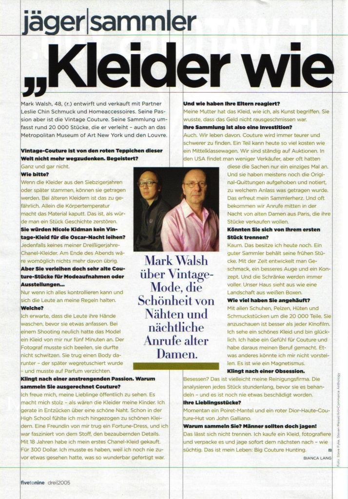 Five To Nine, March 2005 Posted on March 2, 2005May 1, 2014 by LeslieVintage Luxury Interview.Five To Nine, German Luxury Magazine, Drei 2005MWLC ProfileMWLC Profile