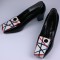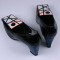 Rare Mondrian inspired shoes by Herbert Levine. Large Pop Art decorated panels of leather turn over the toe on this otherwise sedate pump. The heel is covered in the same blue leather of the design. Vintage size 7B. 1960's USA. Excellent condition.