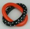 Amazing orange and jet bakelite "Saturn" bracelet of interlocking bakelite ovals. The jet oval is set with rhinestones throughout. Statement bracelet probably of Italian manufacture, 1980s.