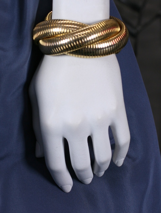 Updating...Striking "Rolling" Retro style bracelet made of 3 gilded stretch bands. 1980's USA.