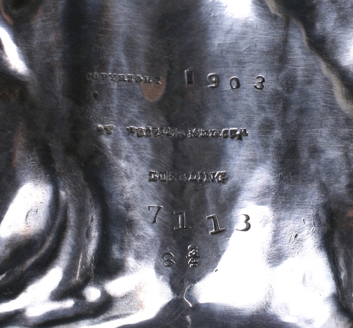 The American maker's mark is illegible as it was struck twice, but, it is dated 1903. An extremely beautiful and unusual sterling bowl in the Art Nouveau taste.