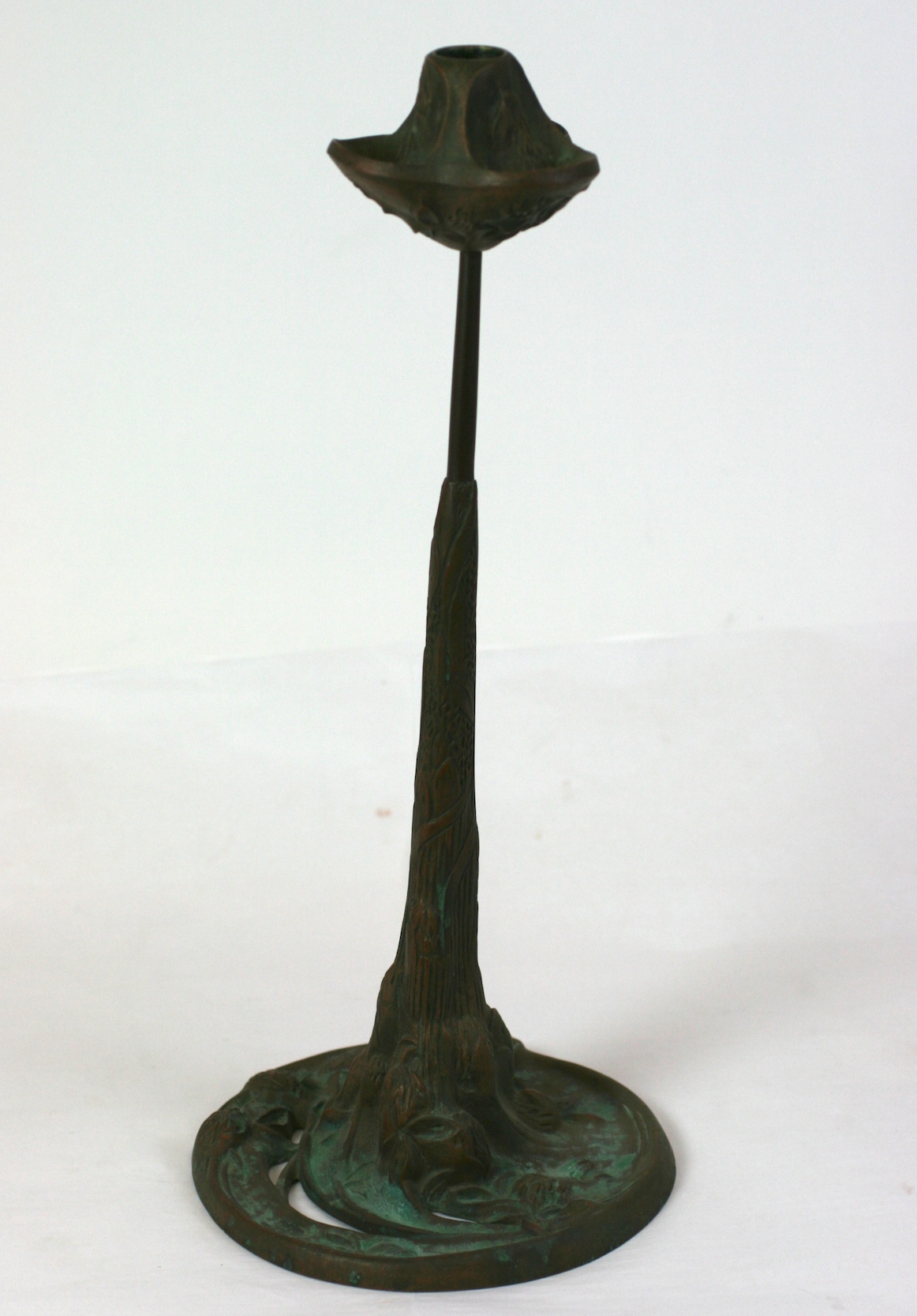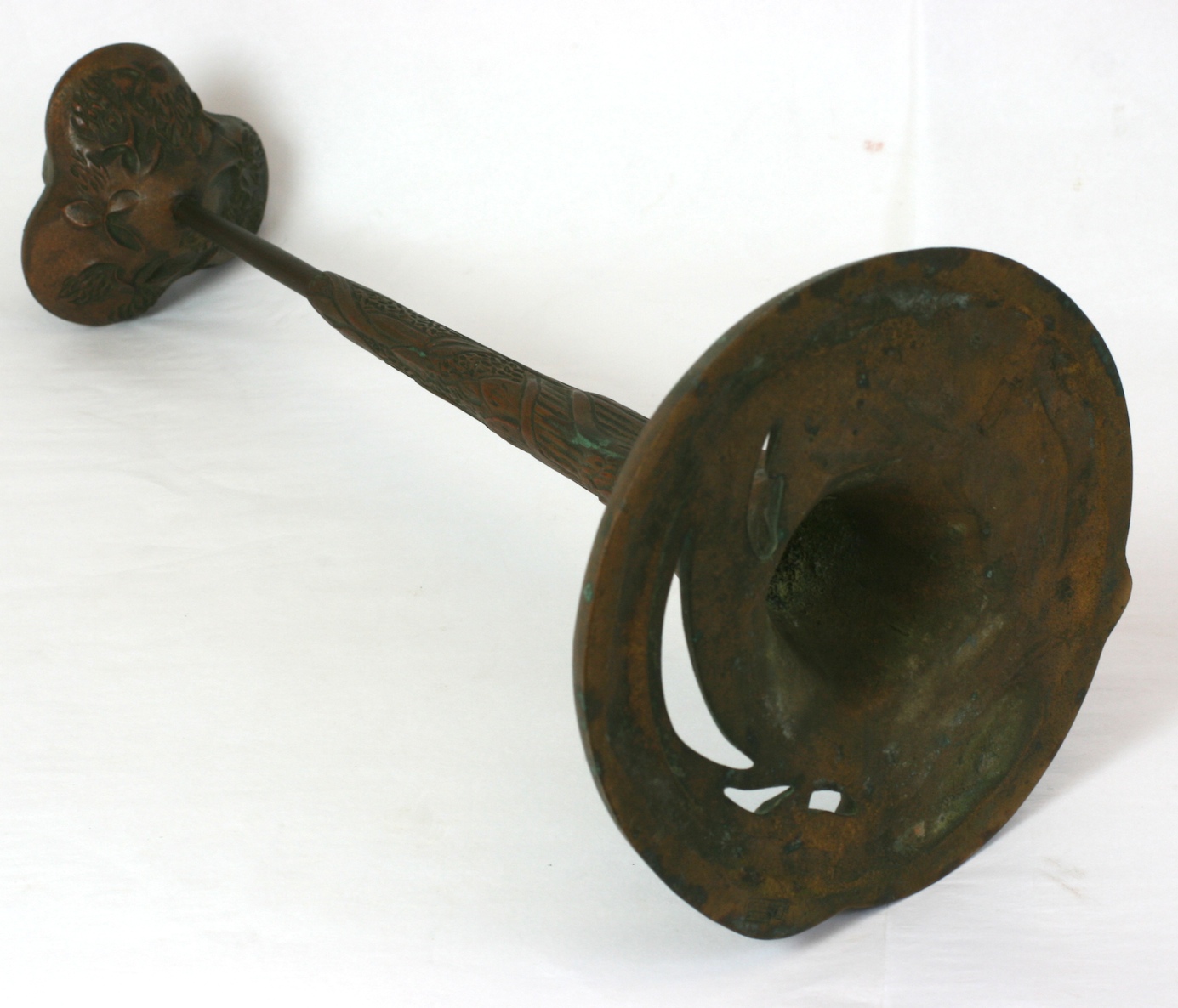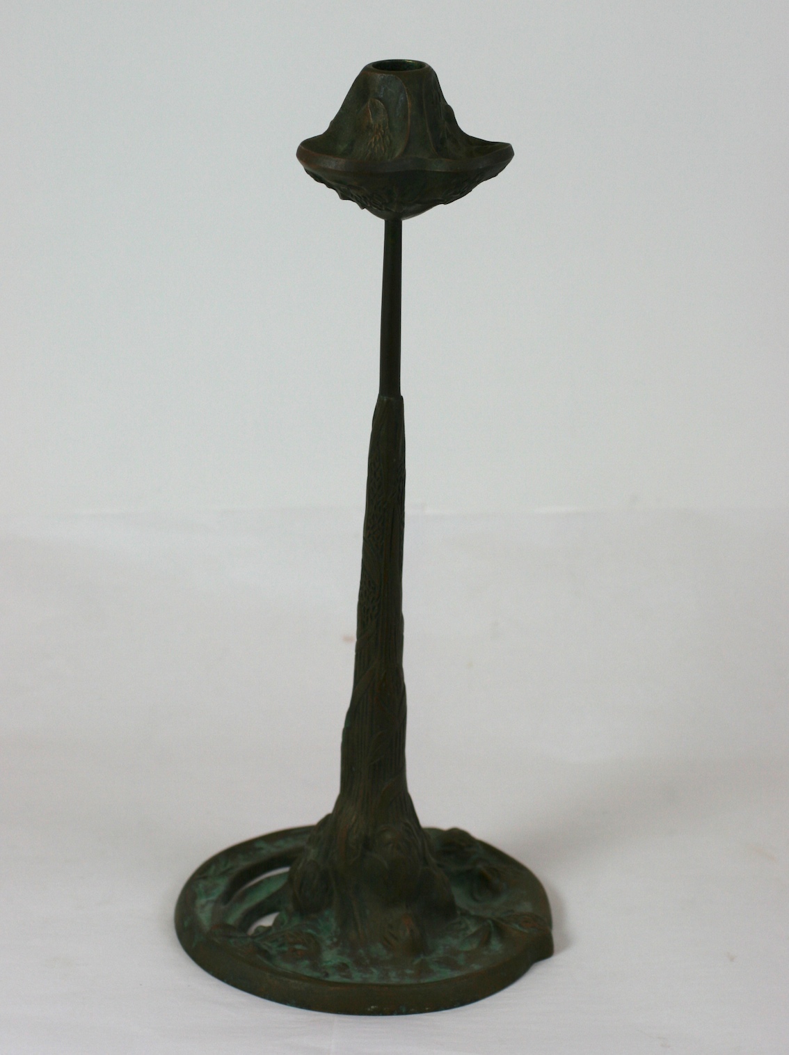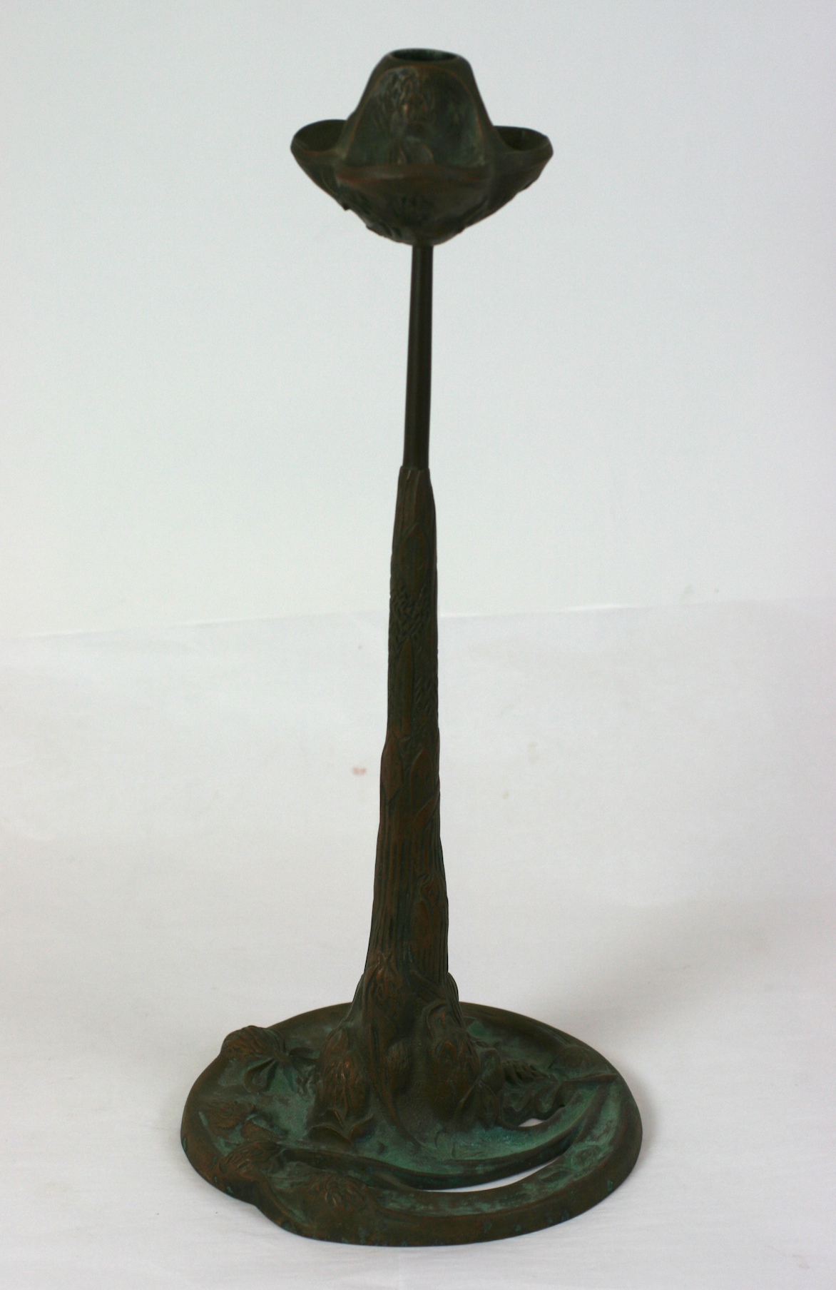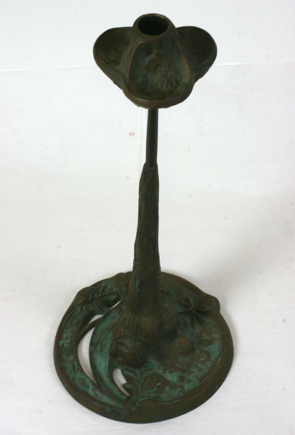 Bronze Arts and Crafts Clover Candlestick, Jessie Preston