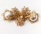 Miriam Haskell signature Russian gilt, filigree Revivalist style brooch of faux smooth and baroque pearls and rose monte crystal stones. 1950's USA.