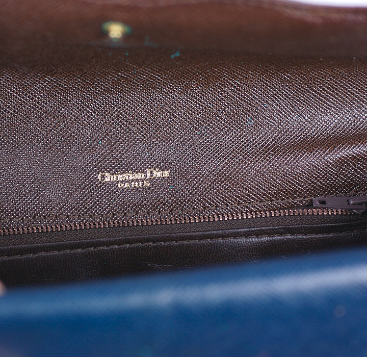 Dior Tri Color Calf Clutch Modern, graphic 3 color calf clutch in brown, navy and butterscotch textured calf. 2 compartments. Dior circa 1970s.Excellent condition9.5 x 7 x 2.5"Product Details Designer: Christian Dior Color: Brown, Navy Price: $450.00 Updating cart...Listed within: ClutchSee Similar Items: Dior Updating...