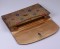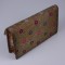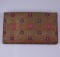 Elegant envelope clutch made antique metallic Indian textile with 14K gold ball and ruby clasp. Lined in peach silk satin with multiple compartments. USA 1950's.