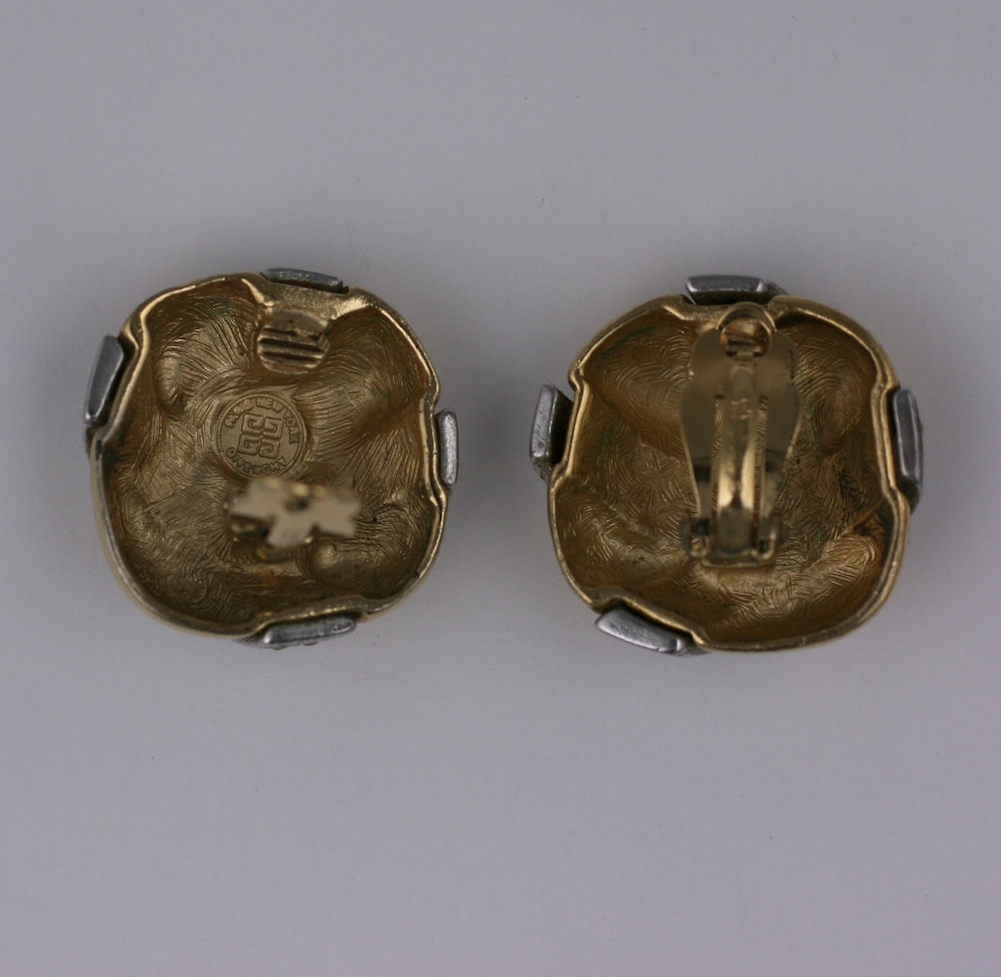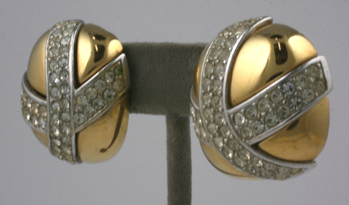 Attractive Givenchy large scaled clip earrings in gilt metal with large contrasting pave "X" patterns. 1.25" x .5".