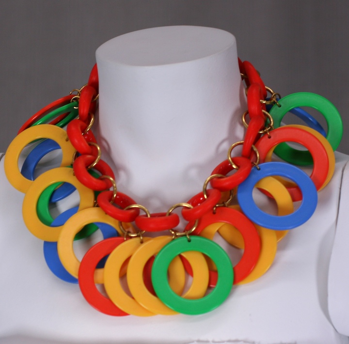 Unusual Miriam Haskell tropical resin chain link and hoop necklace. 1960's USA. Excellent condition. Signed.