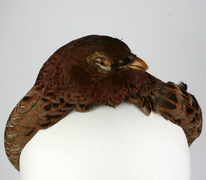 Here a taxidermied hawk has been applied to soft band and can be worn as a bird crown/tiara for a modern goth bride. A head band would have to be attached for the head piece to be worn as it was probably stitched or pinned into elaborate hair.