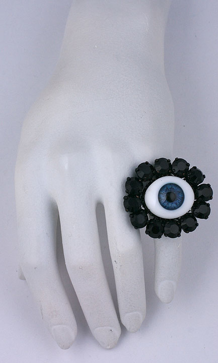 Rodarte "Eye" ring made for the Japanese Horror (FW08) Collection by Mark Walsh Leslie Chin. Antique taxidermy eyes were sourced for this collection which was inspired by the film "The Grudge/ Ju-on". Blue eye with Jet surround.