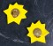 Pop inspired Chanel Earrings.The only Chanelism apparent are the faux baroque pearls. Lichtenstein inspired chrome yellow bakelite stars with gilt clip backs.