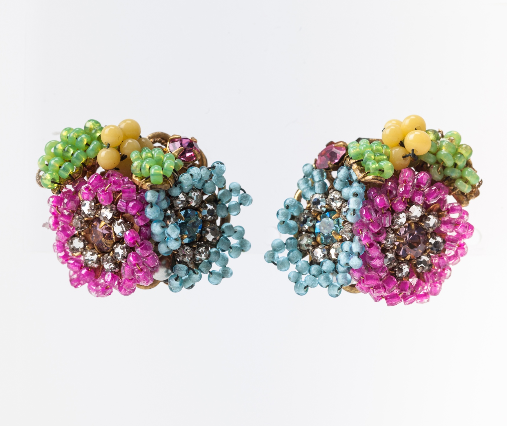 Name: Miriam Haskell Multicolor Flowerhead Earclips