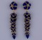 MWLC handmade tiered flower earrings in lapis poured glass enamel. These are made in couture tradition of handmade runway jewelry. Every metal bezel is hand formed and each molten glass petal is hand poured into its individual setting. Pave rhinestone rondels separate each tier so they shimmer as the wearer moves.