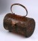 When light hits the transluscent lucite the bag glows and the copper patterning reveals itself.The process of hand "cladding" the lucite is laborious and similar to how sterling is overlaid on glass on period silver overlay glassware. One small section of loss on back, right. Otherwise excellent condition.