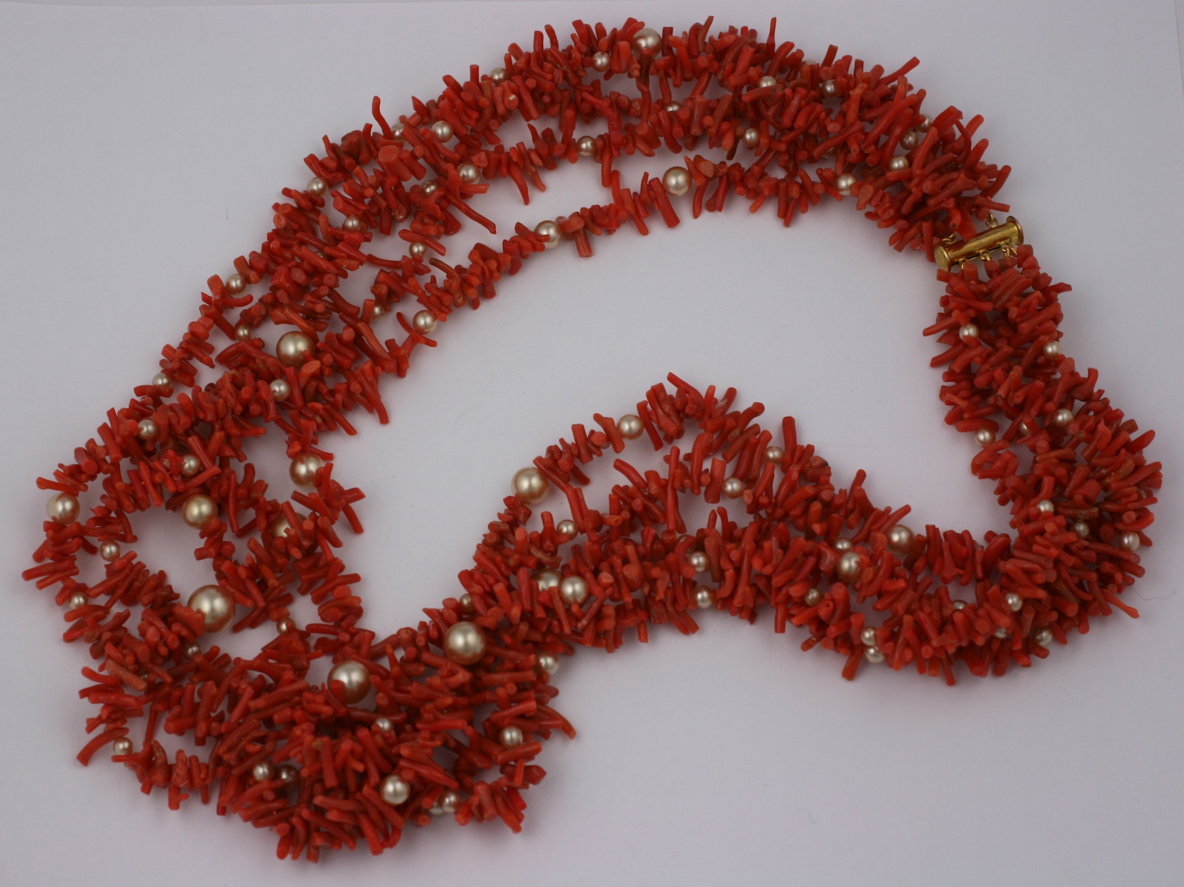 4 strand genuine branch coral and faux pearl necklace. Luxurious drape.