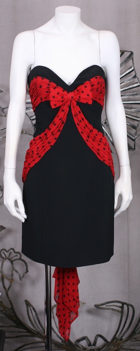 Name: Moschino Strapless Polka Dot Sash Dress