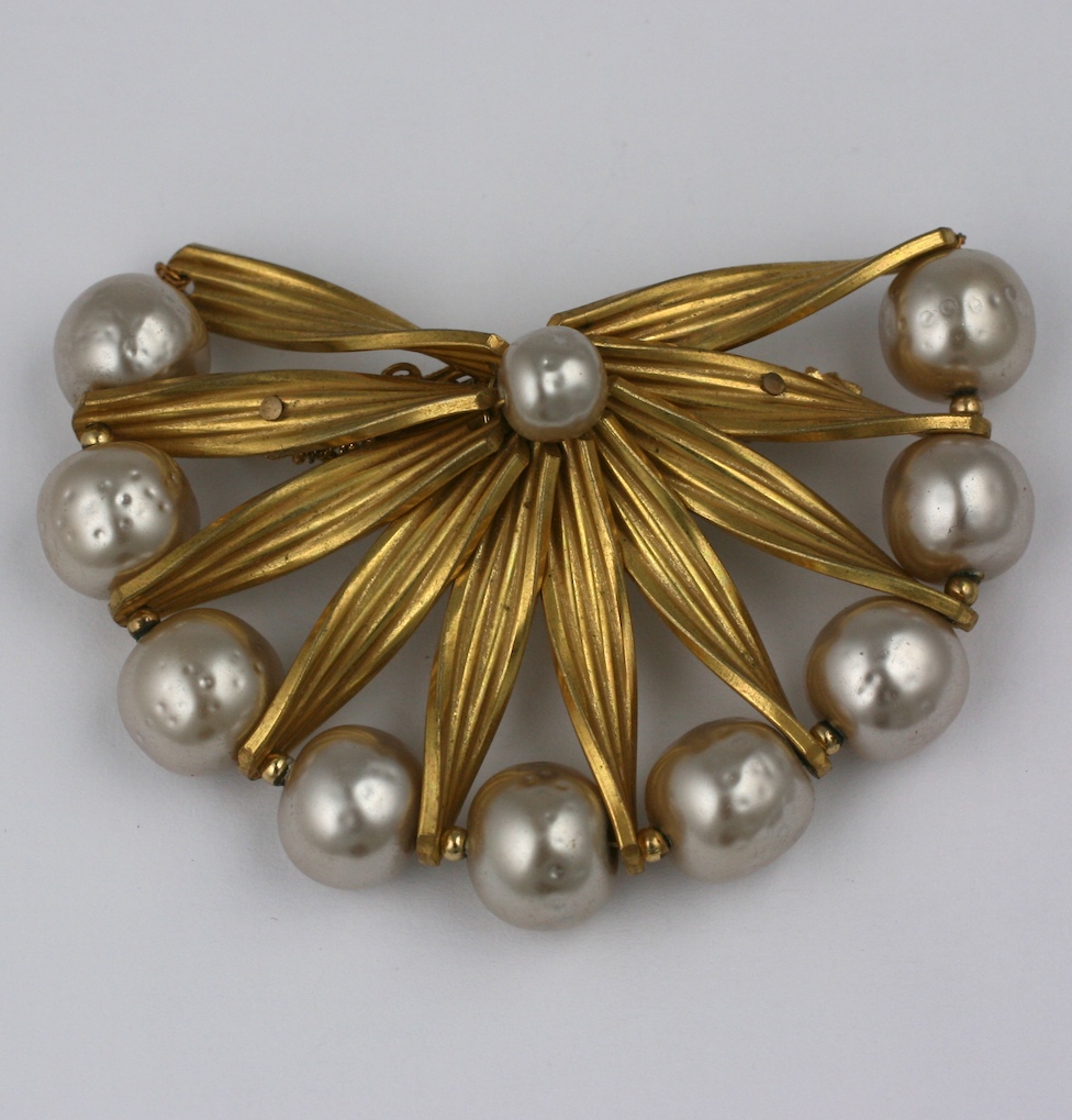 Miriam Haskell's russian gold and signature baroque pearl semi circular brooch.
