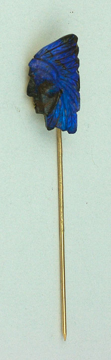 Excellent condition. Italy 1950s.Name: 19th Century Boulder Opal Carved Stickpin of Indian Chief.