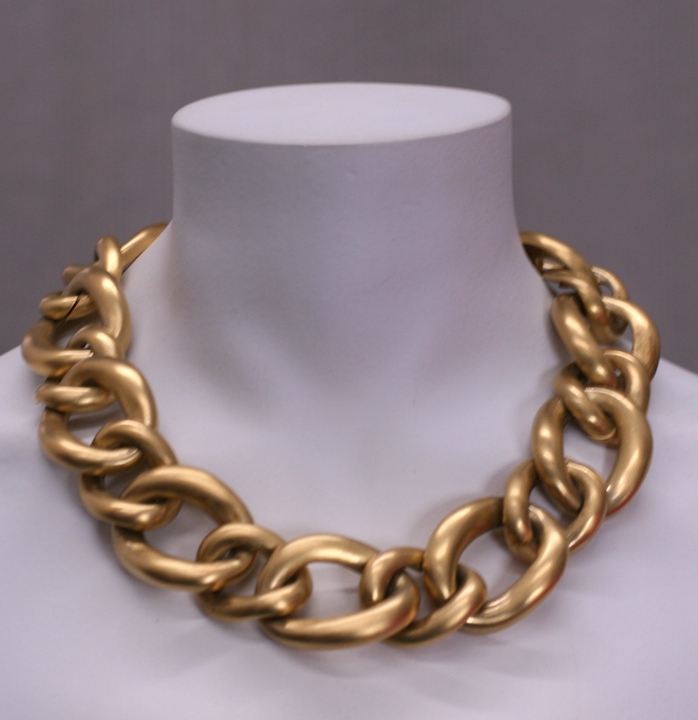 Updating...Givenchy oversized satin gold finish curb link necklace. 1980's France. Unusual finish (slightly bronze) and scale. 19" x 1.25". Excellent condition.