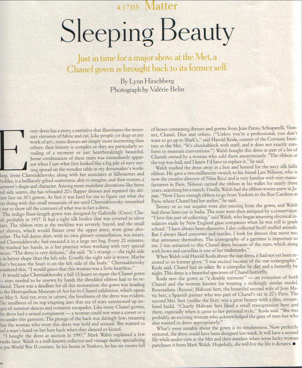 New York Times Magazine: Story Of The Chanel Star Dress, 4-17-05 Loaned By MWLC