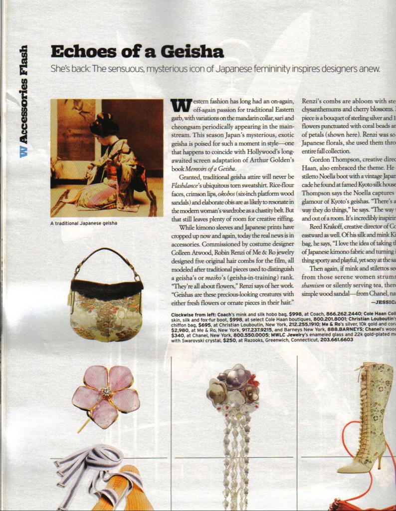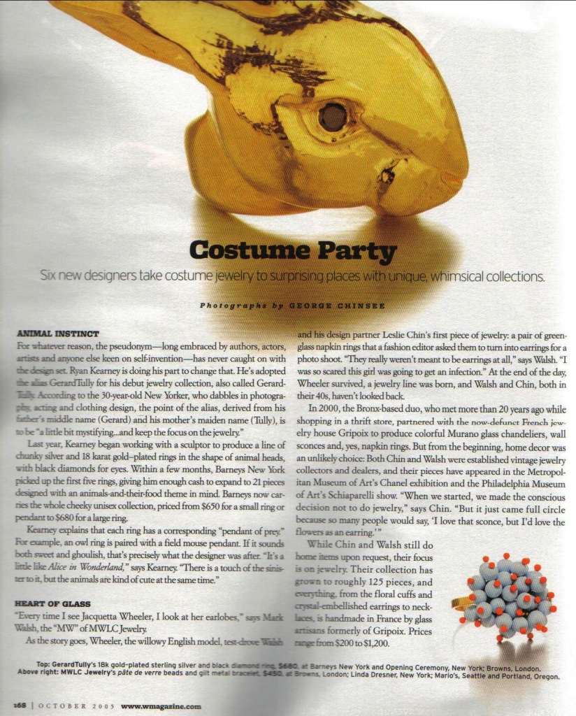 W Magazine, October 2005 Posted on October 2, 2005May 1, 2014 by LeslieMWLC Jewelry Line Profile.W Magazine, Oct. 2005W Magazine Profile, Oct. 2005W Magazine Profile, Oct. 2005